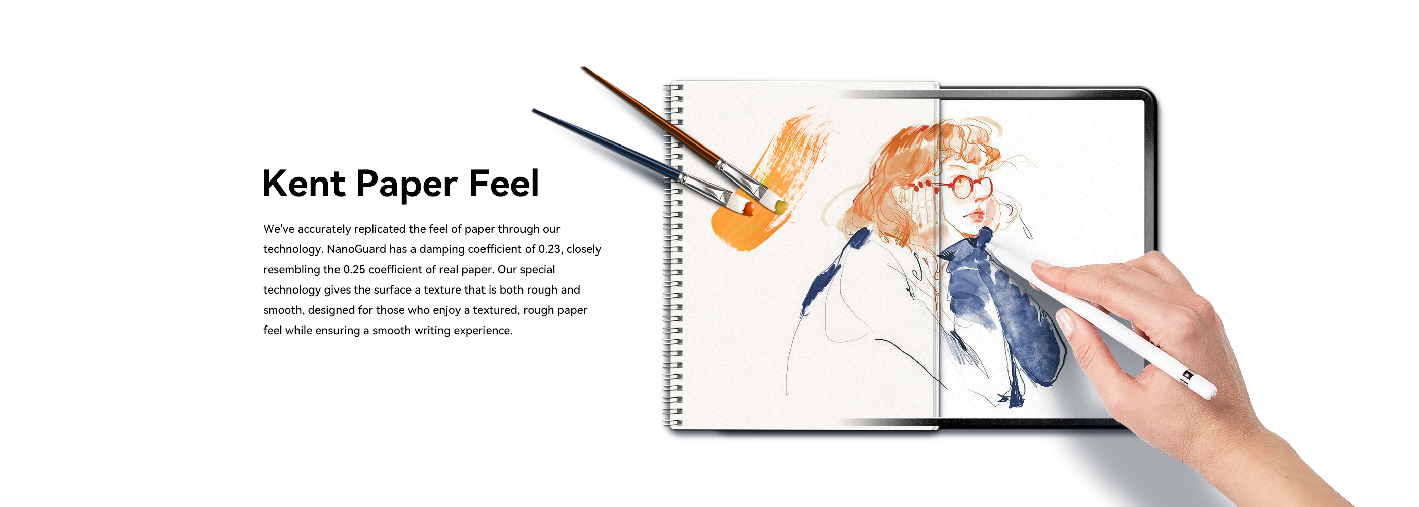 NanoGuard mimics the sensation of writing on real paper. It offers the perfect balance between texture and glide, so every stroke with your Apple Pencil feels natural and controlled. The surface uses Kent paper texture and a precise damping coefficient of 0.23, which is almost identical to traditional paper (0.25).